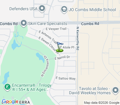 Welcome Home! Huge corner Lot, in the gated golf community of Encanterra. Step into this popular Nice model perfectly setup for an entertainers paradise. You will love the dual rolling walls of glass and a covered outdoor patio with fireplace and motorized shades.The spacious kitchen features upgraded cabinets with a large center island and granite countertops. The thoughtful addition of the ''smart space'' housing laundry facilities and cabinetry with desk area enhances the convenience and functionality of daily living. Enjoy 5kw Solar owned. Encanterra is a highly sought after, quiet golf course community with amenities and vibrant social events to enjoy!. |