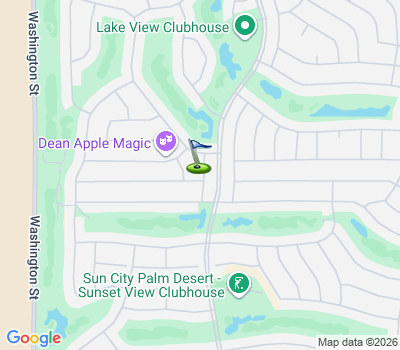 Residents of Sun City Palm Desert enjoy world-class amenities including two championship 18-hole golf courses, pickleball, tennis, softball, bocce ball, and an 18-hole miniature golf course. The community also offers an honor library, arts and crafts studios, a ballroom for entertainment and events, four saltwater pools with hot tubs, three clubhouses, three restaurants, a private postal center, and two fully equipped fitness facilities.