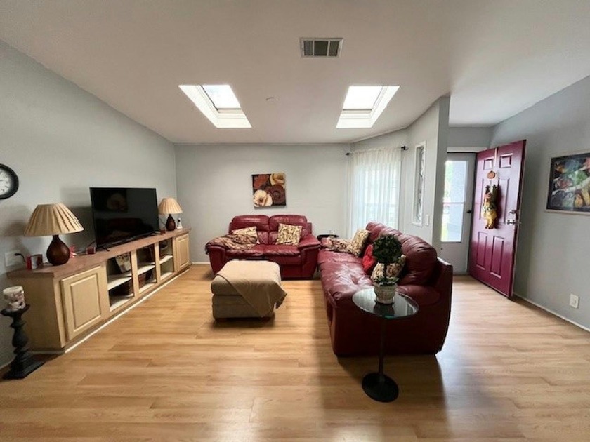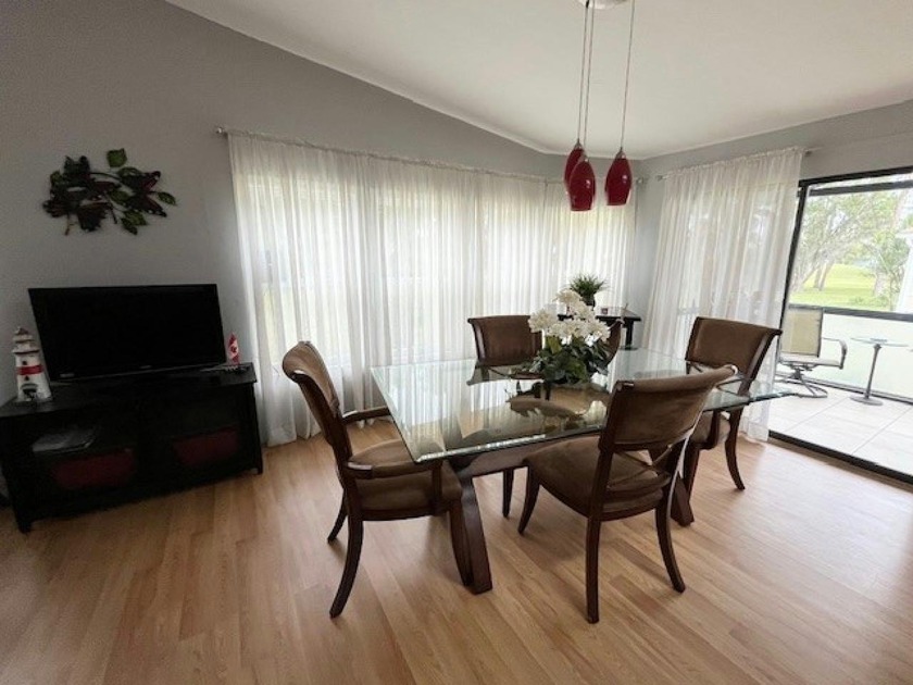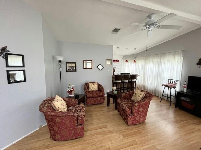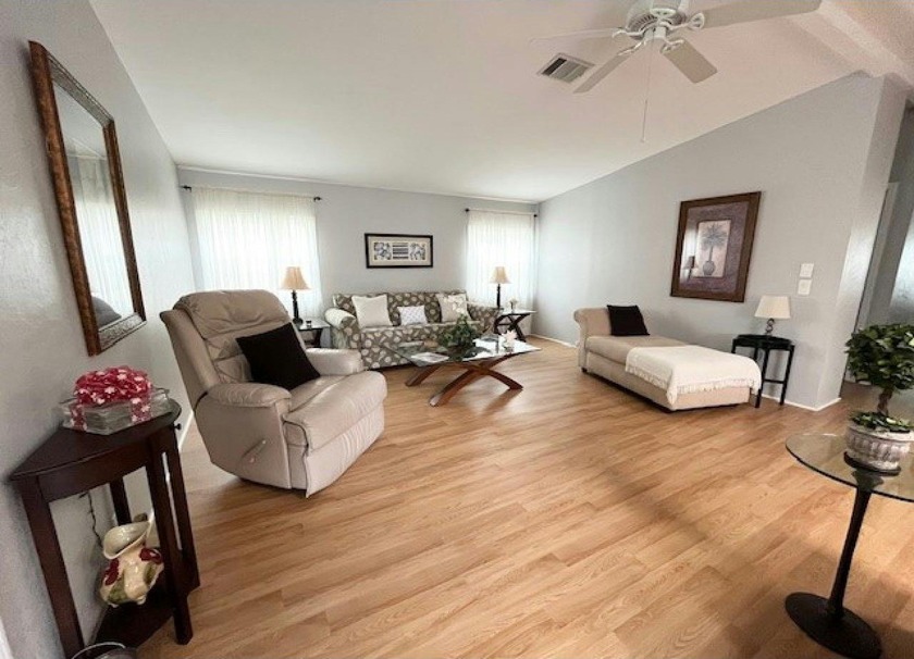 A beautifully maintained home offers a golf course view from the