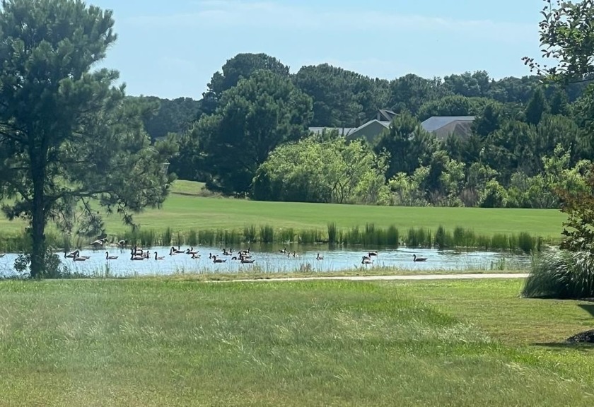 Cozy cottage with open floor plan with a pond and golf courtse