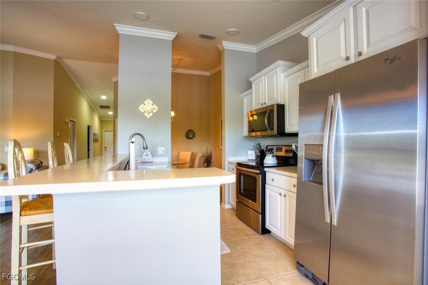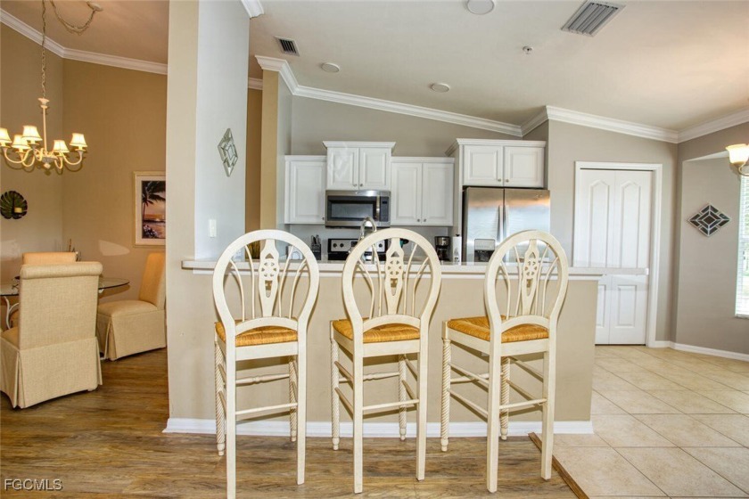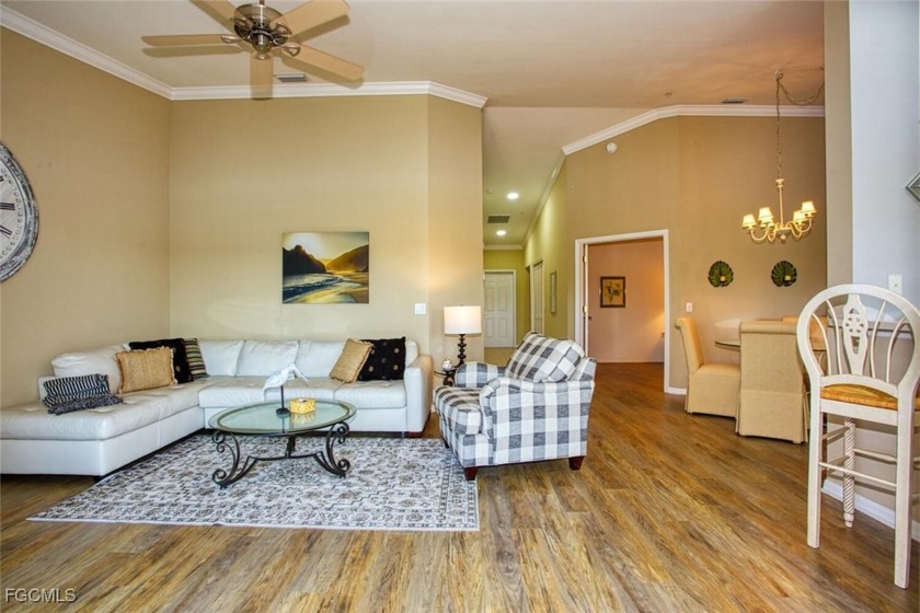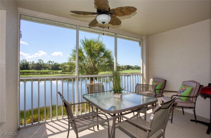 Enjoy sweeping views of the golf course, lake, and wooded