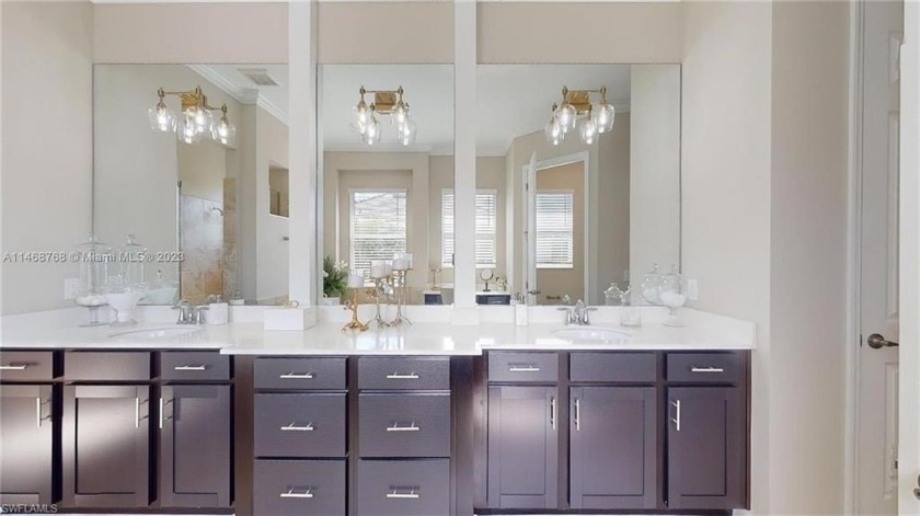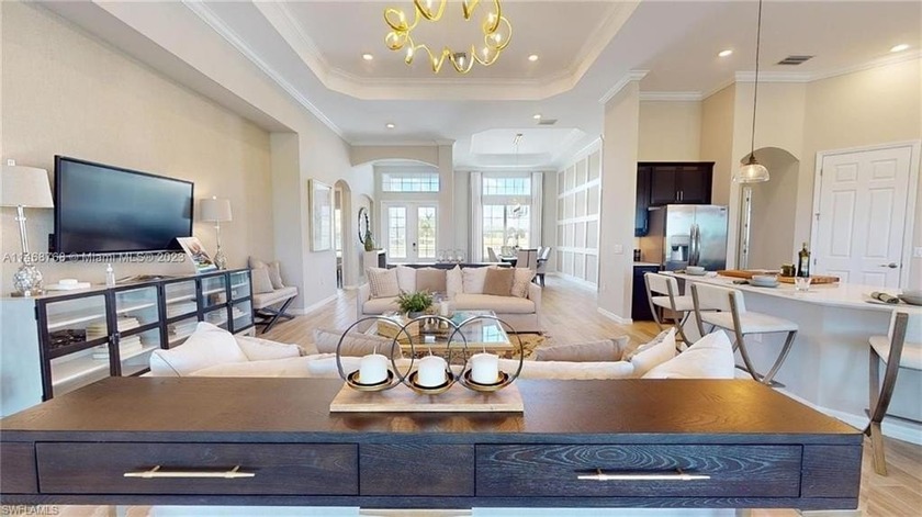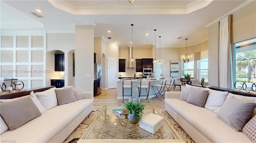 This stunning home boasts panoramic views of the lake and golf