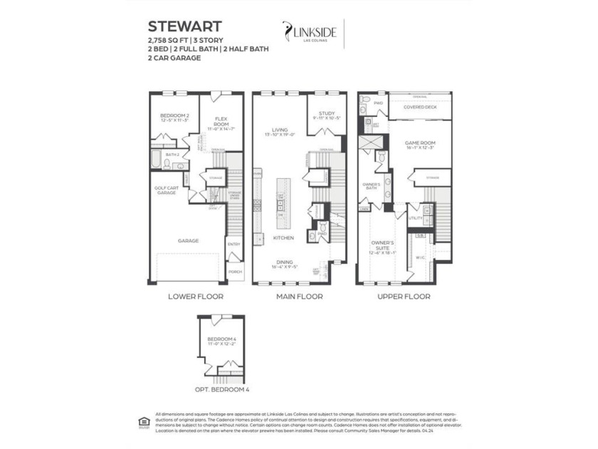CADENCE HOMES STEWART floor plan. Three story, modern elevation