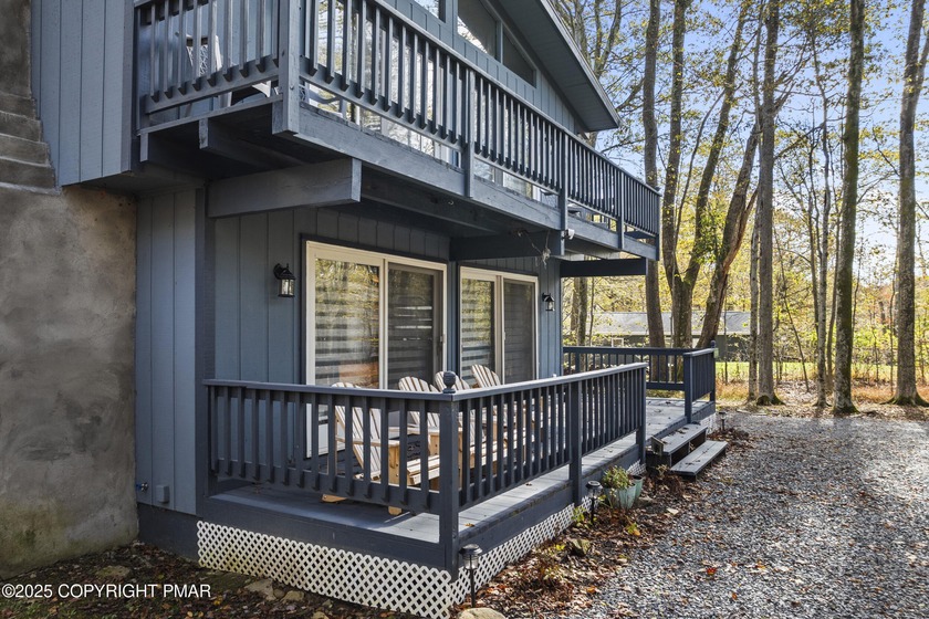 Tucked beneath a canopy of whispering trees, this modern chalet