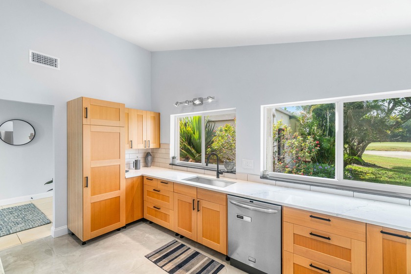Beautiful golf course views surround this bright and inviting
