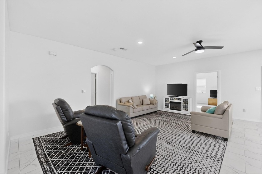 Enjoy the golf course community in this almost new home modern