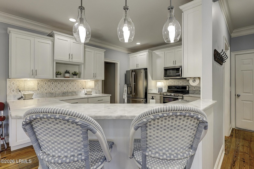 Nestled on a quiet street beneath stunning live oaks, this