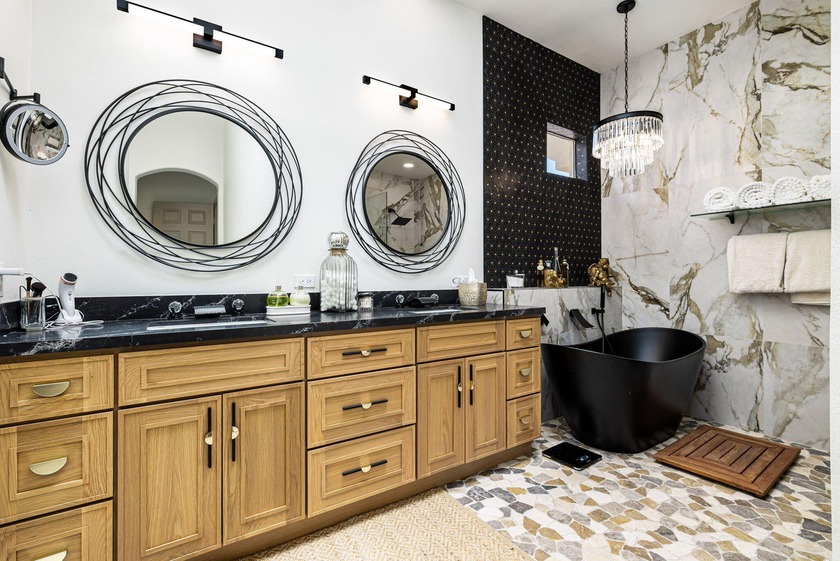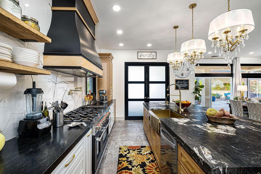 Enter through leaded glass double doors into an open concept