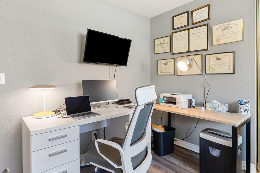 This one-story, west-facing end-unit condominium is located