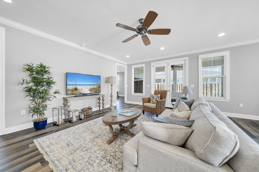 As you arrive at 304 Windrow Way, the corner-lot setting and