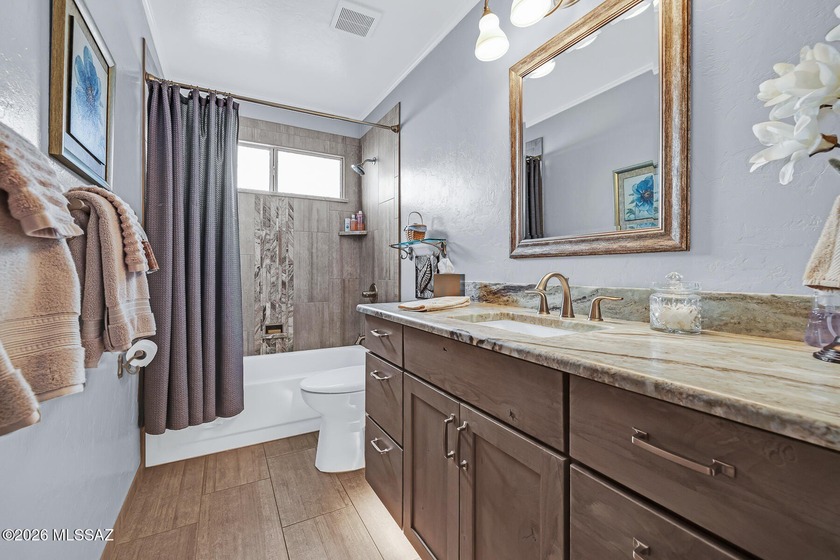 The remodeled kitchen steals the show inside this 2BD/2BA 1835