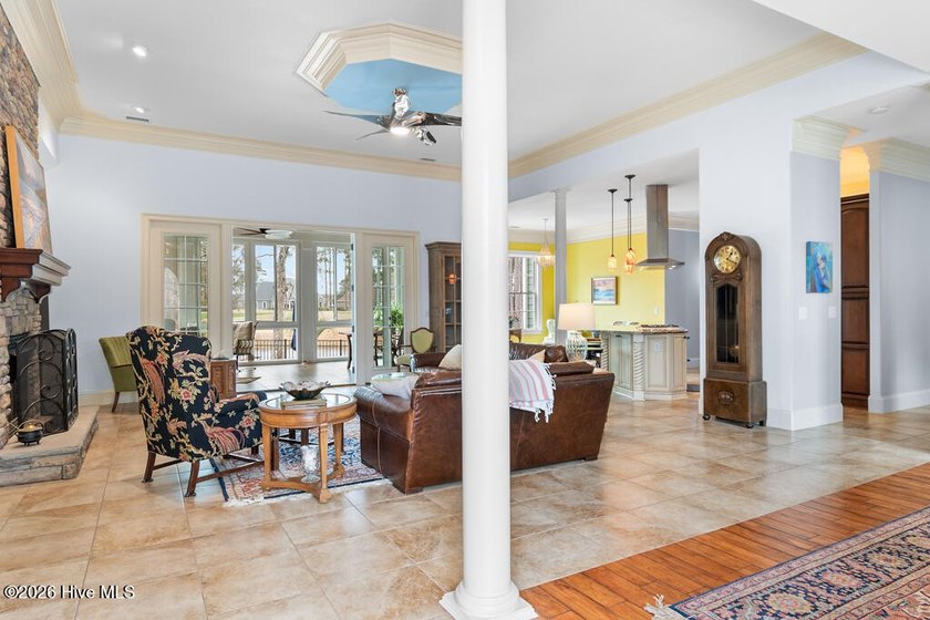 Panoramic water and golf course views set the stage for this
