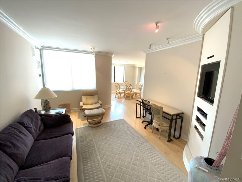 Long, wide and dramatic living room, formal dining room, gourmet