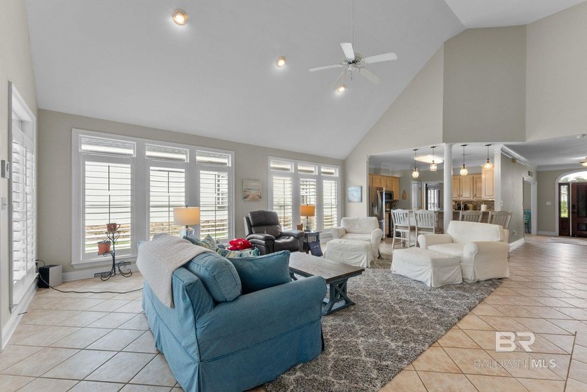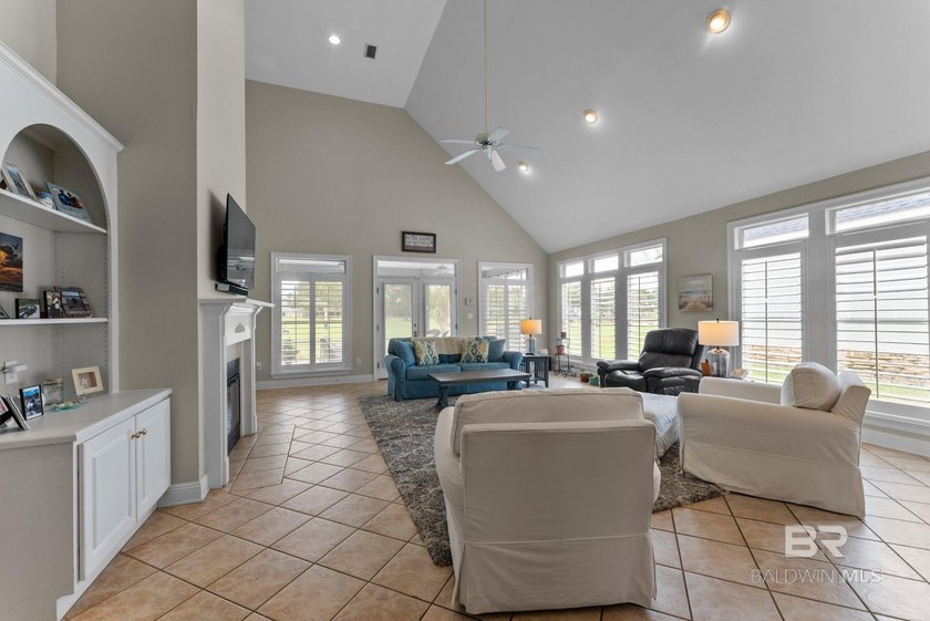 Beautiful open floorpan with soaring ceiling on the #5 fairway